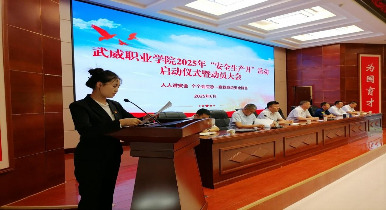 6月16日下午,“安全生產月”啟動儀式暨動員大會在學校菁英廳舉行。學校黨委委員、副校長王守云作動員講話,強調校園安全是辦學治校的生命線,要求全校師生以高度的責任感積極參與各項活動,將安全理念內化于心、外化于行。安全保衛處處長李欣對活動作了詳細安排。學生代表王盼發出倡議,號召同學們自覺學習安全知識、遵守安全規范、擔當安全責任。最后,師生代表在印有活動主題的承諾墻上鄭重簽名,表達踐行安全的堅定決心。