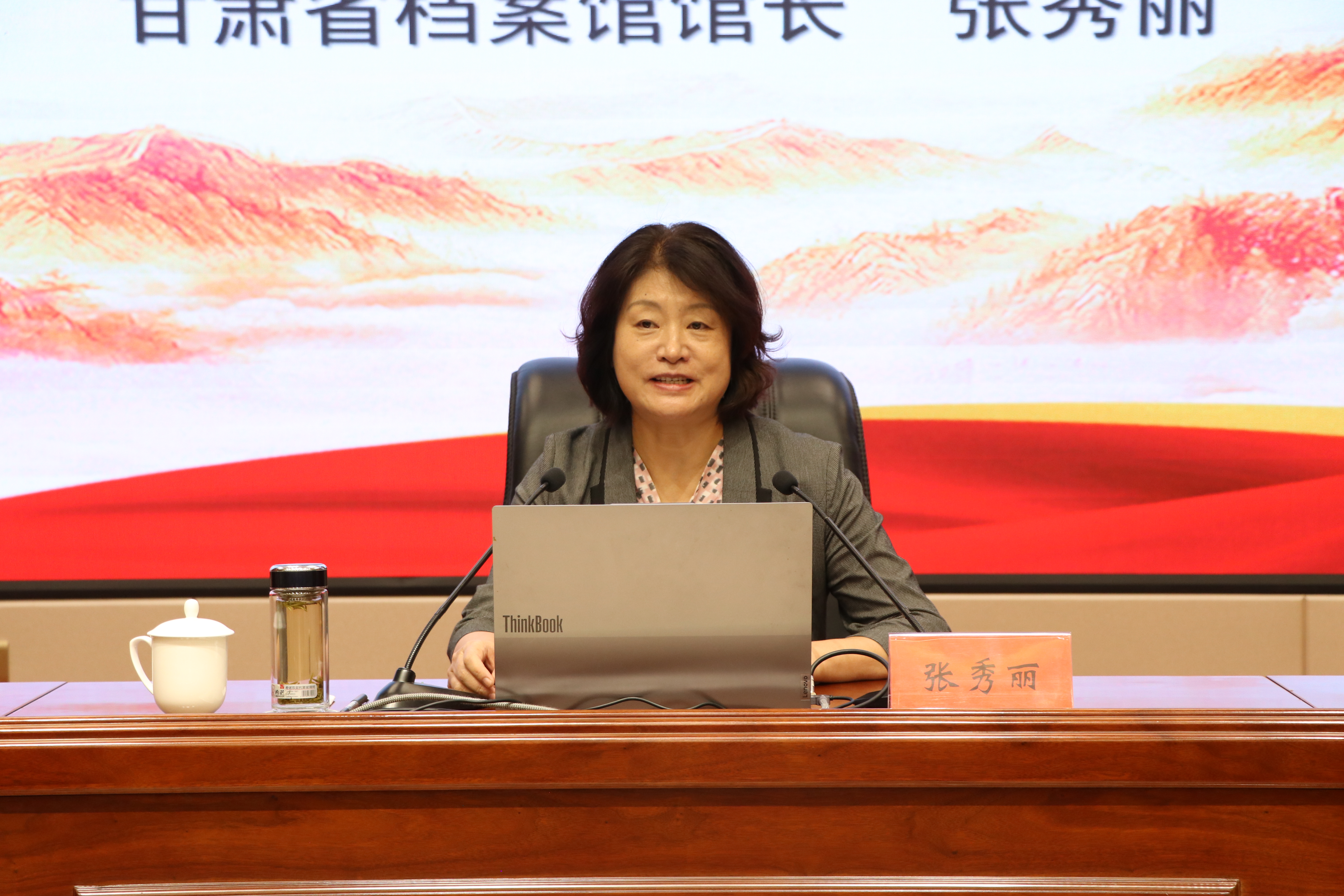 張秀麗結合自身從事檔案管理和文化研究的豐富經驗,從檔案“存史、資政、育人”根本任務出發,通過大量珍貴檔案文獻和歷史案例,系統闡述了檔案在記錄民族苦難輝煌、服務當代治國理政、培育時代新人中的重要作用。報告中,她以館藏漢代簡牘、革命烈士叢德滋00001號烈屬證、民勤治沙檔案、甘肅地震檔案等一批具有歷史代表性和地域特色的檔案為載體,帶領師生穿越時空,感受中華民族生生不息的精神力量,深刻解讀“勿忘昨天的苦難輝煌,無愧今天的使命擔當,不負明天的偉大夢想”的時代內涵。