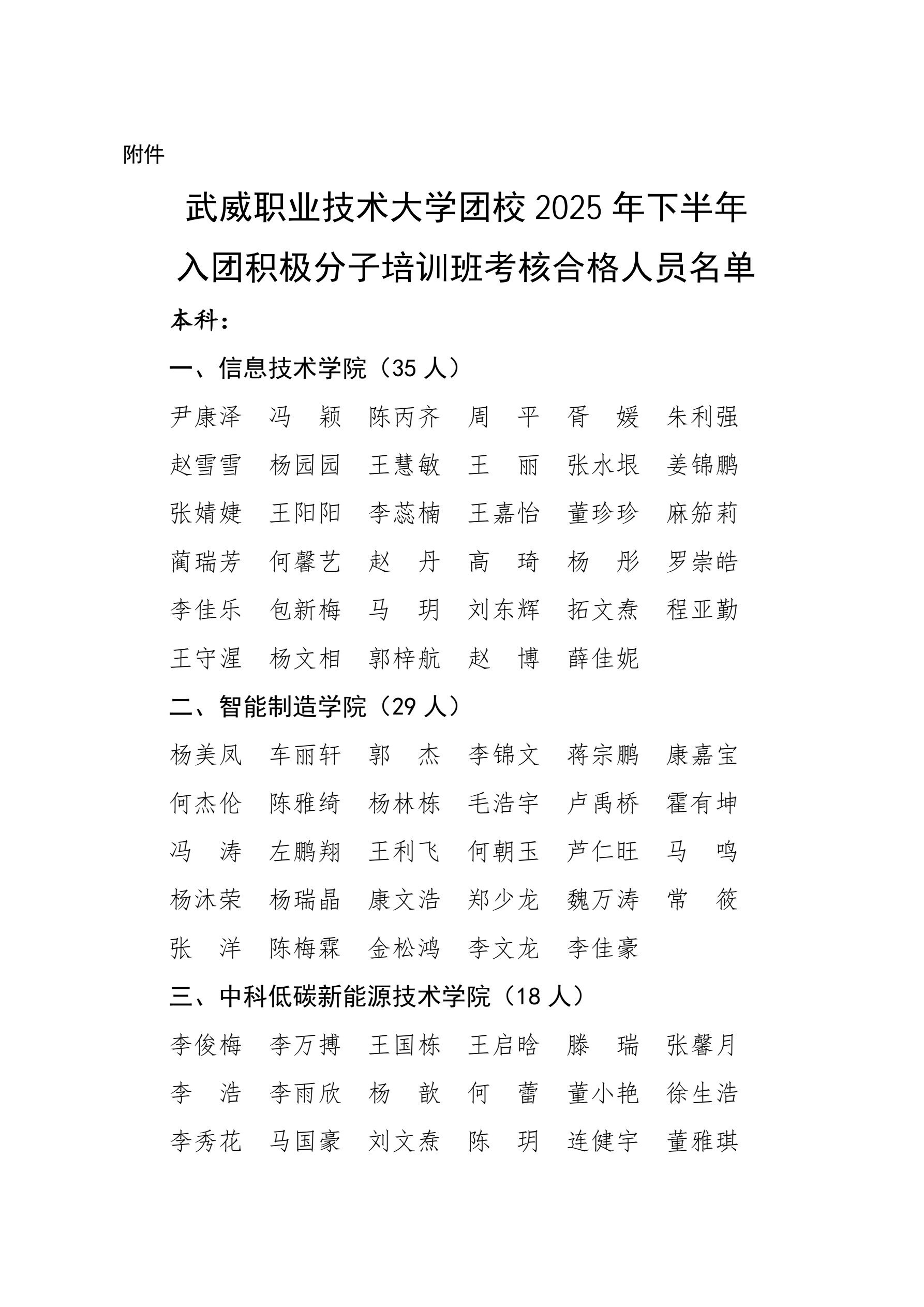 武威職業(yè)技術大學團校2025年下半年入團積極分子培訓班考核合格人員名單公示