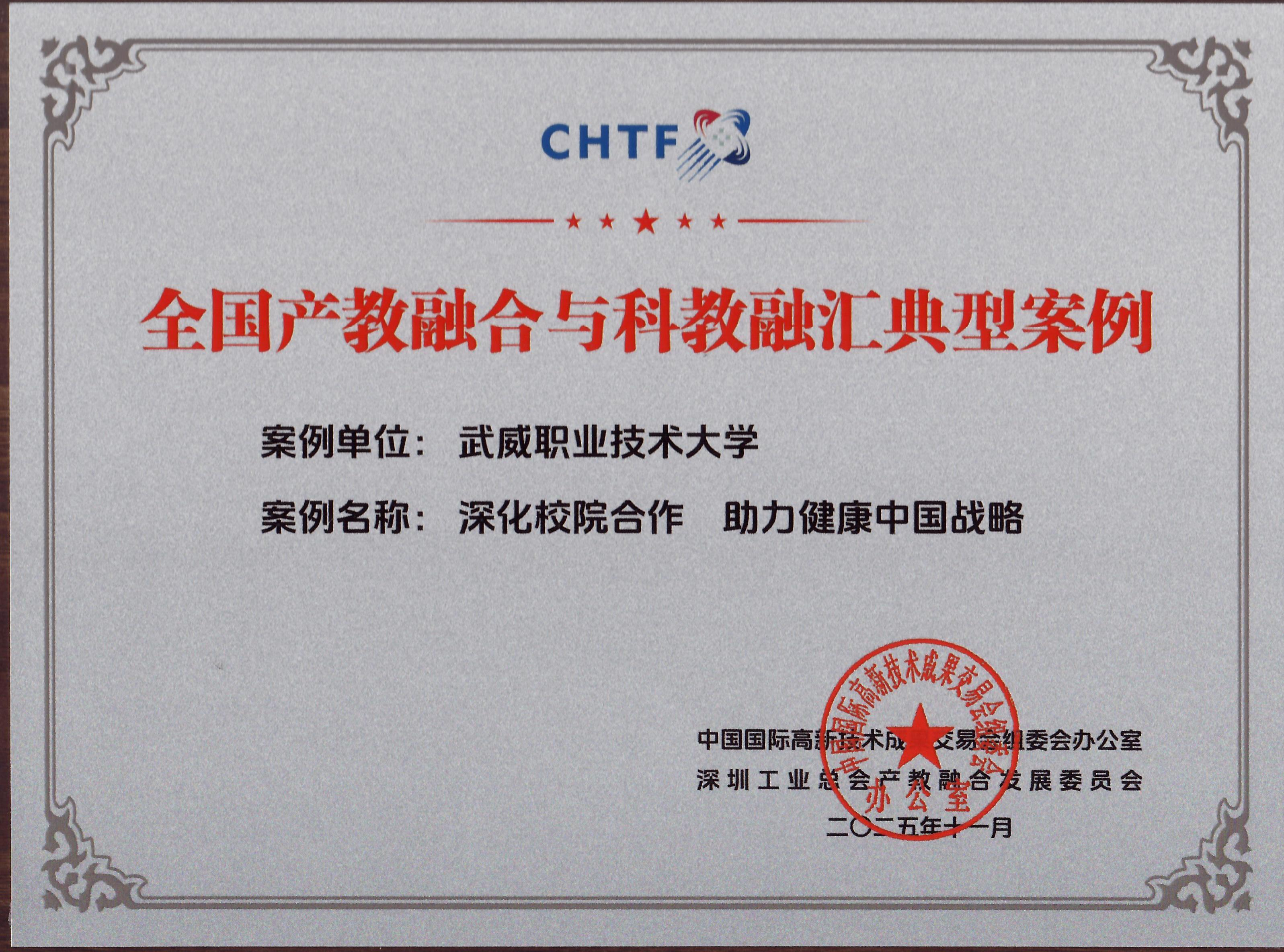 近日,第二十七屆中國國際高新技術成果交易會組委會公布產教融合與科教融匯典型案例評選結果,我校報送的《深化校院合作 助力健康中國戰略——武威職業技術大學與甘肅省武威腫瘤醫院開展校院合作新實踐》成功入選《全國產教融合與科教融匯典型案例匯編》,標志著我校在實施科教融匯行動,推動健康人才培養實踐獲得國家級平臺認可。