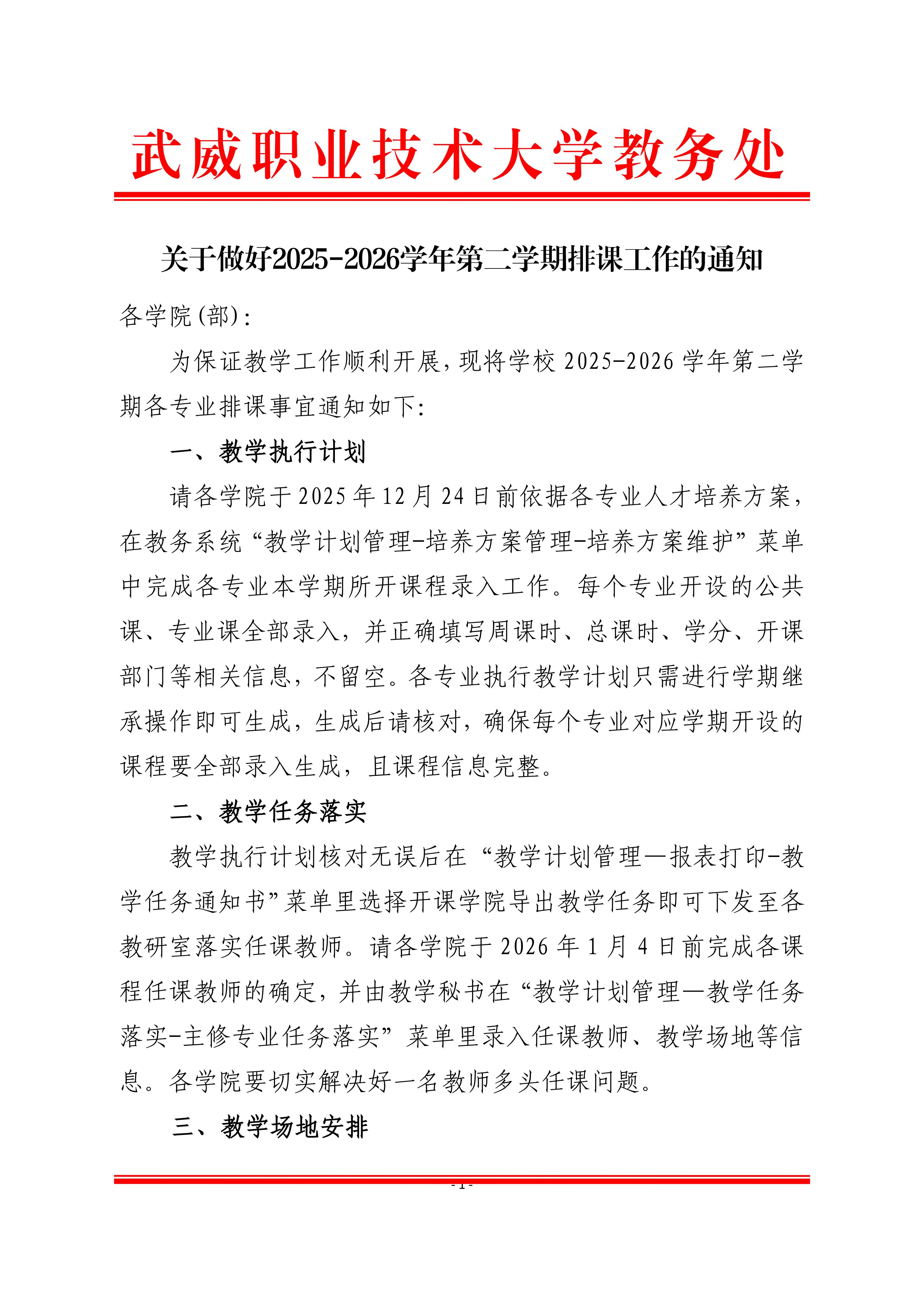 關于做好2025-2026學年第二學期排課工作的通知