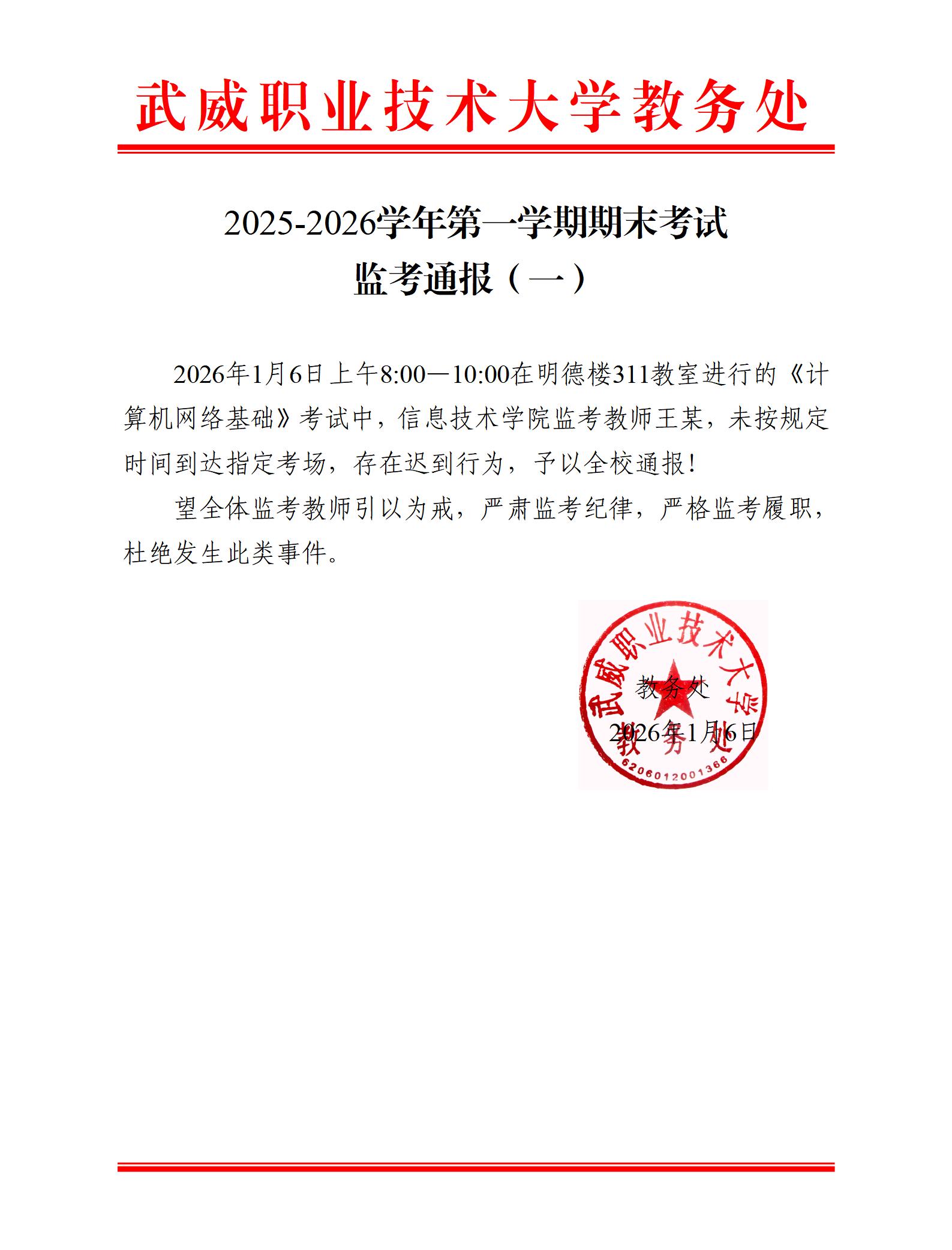 2025-2026學年第一學期期末考試學生違紀作弊通報(四)
