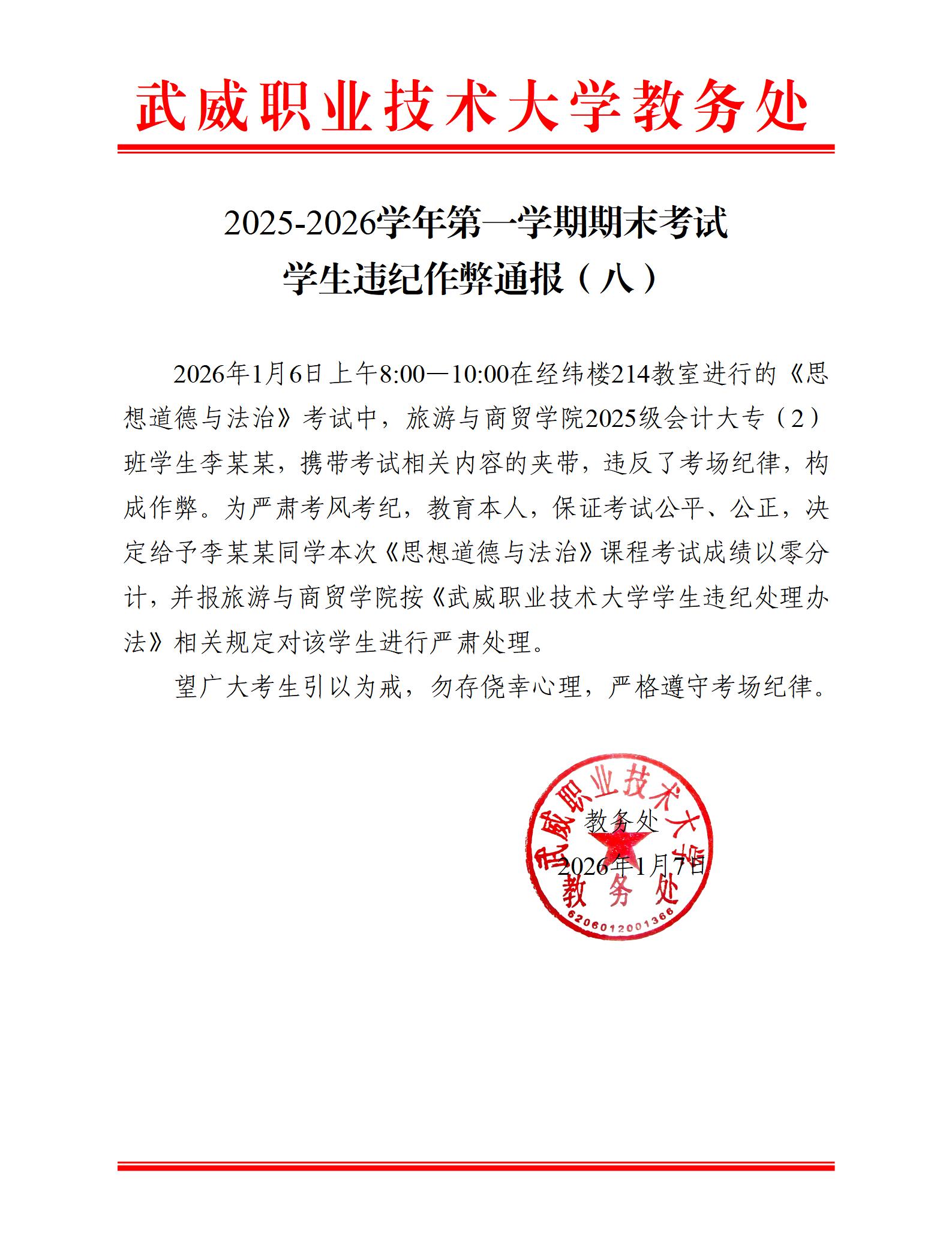 2025-2026學年第一學期期末考試學生違紀作弊通報(八)