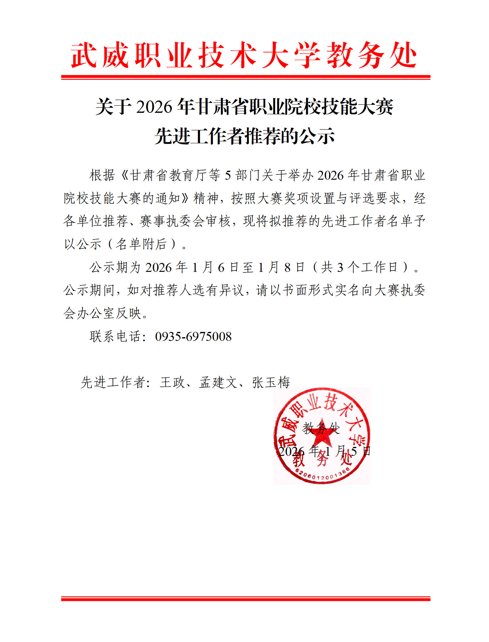 關(guān)于2026年甘肅省職業(yè)院校技能大賽先進(jìn)工作者推薦的公示